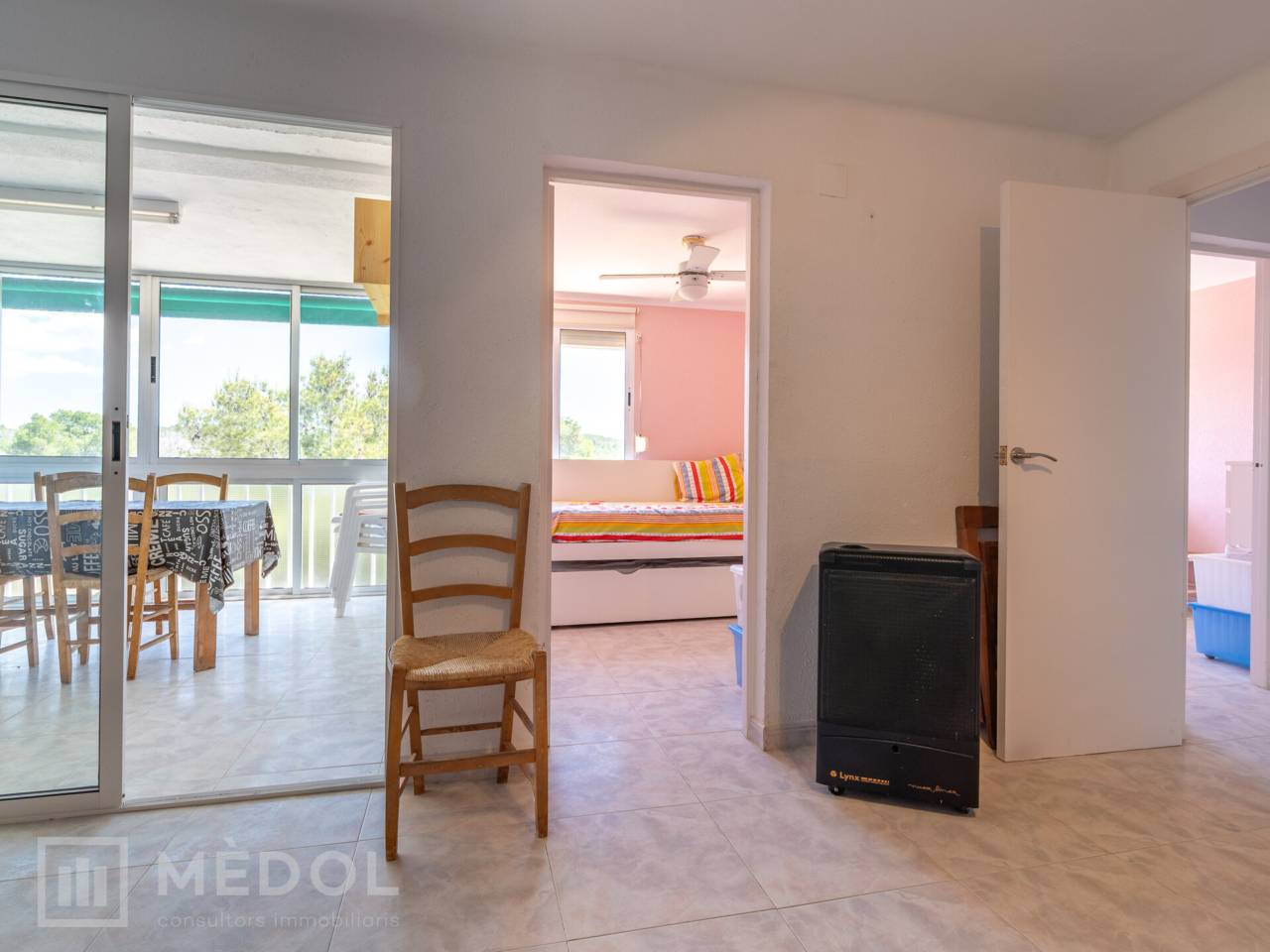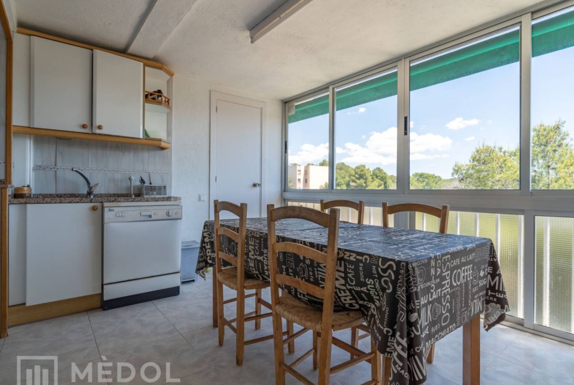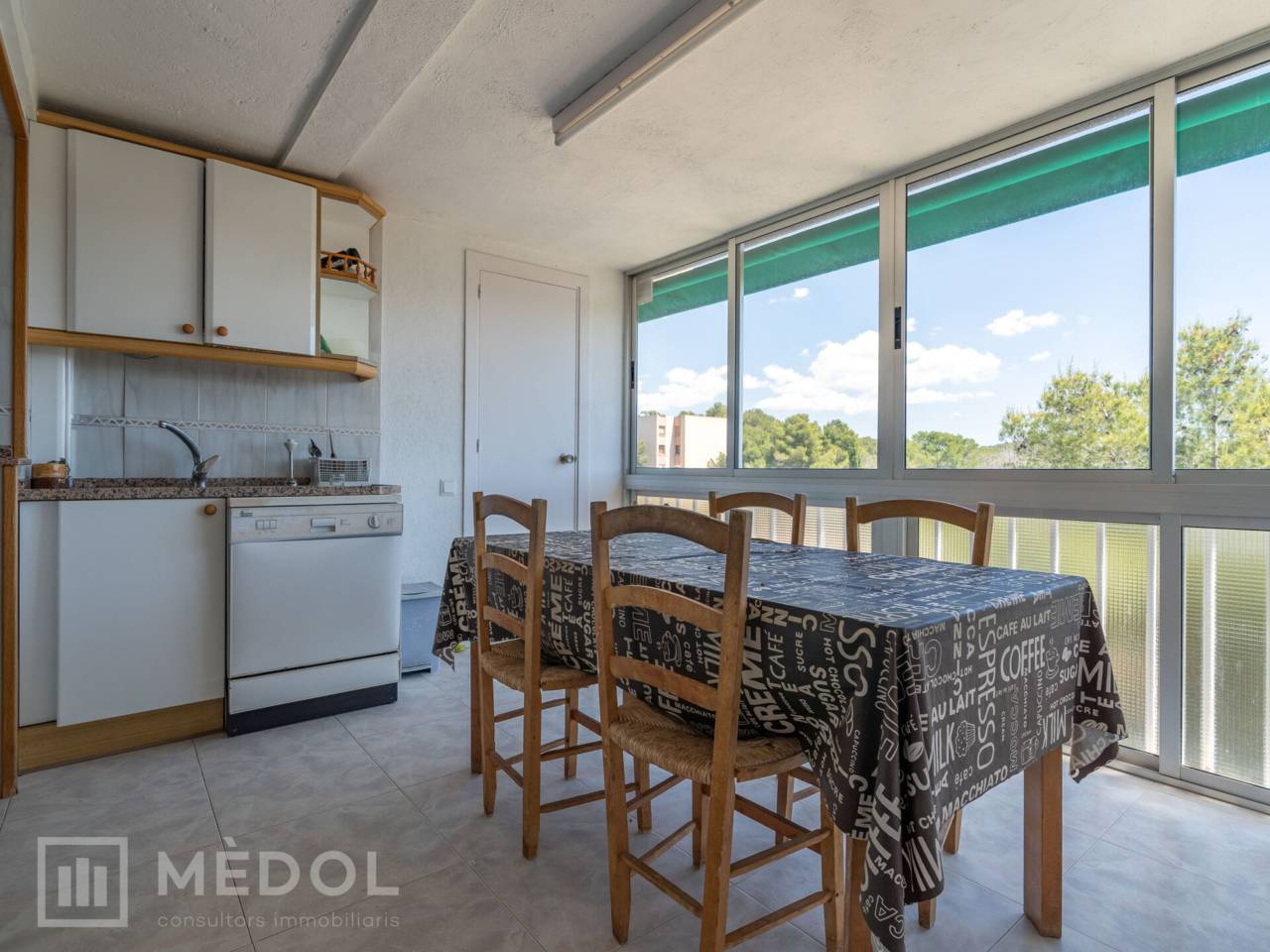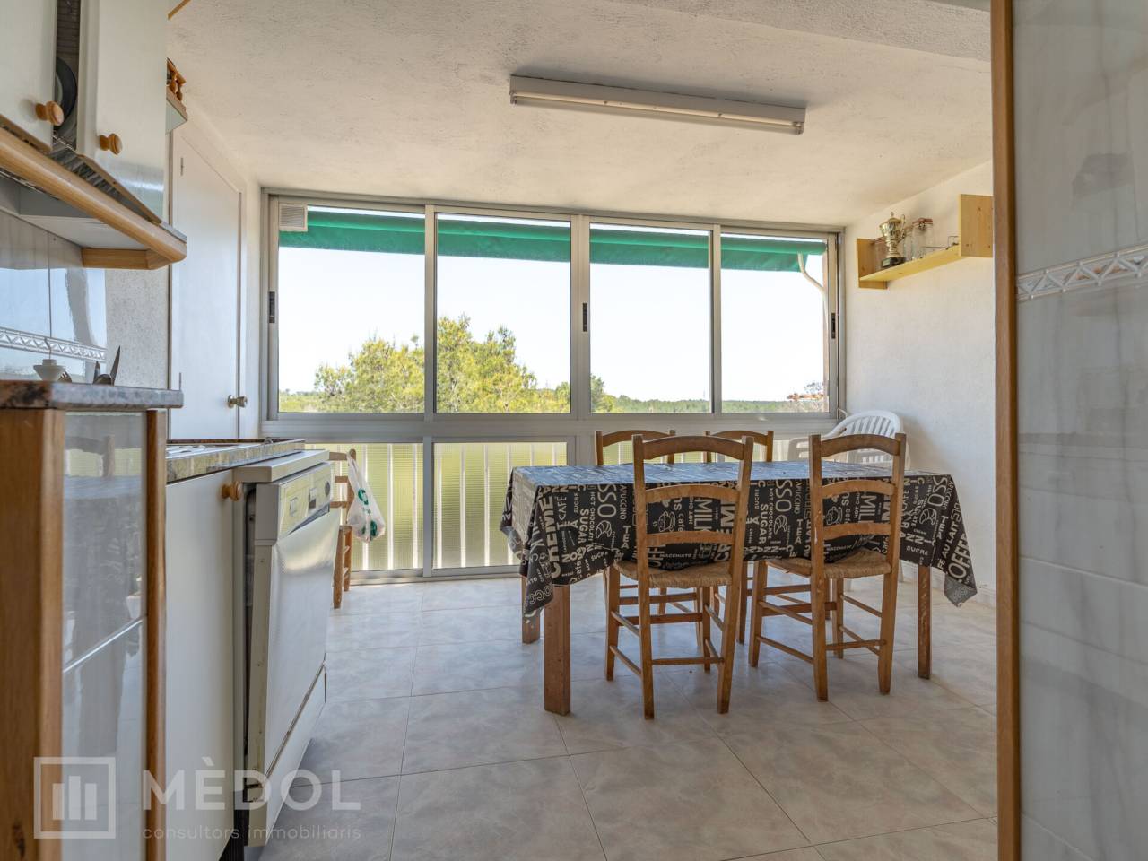 La vivienda cuenta con 75 m² muy bien distribuidos, con un amplio salón-comedor exterior que ofrece una bonita vista abierta a una zona verde, perfecta para relajarse. La cocina es abierta y muy funcional, ideal para el día a día.