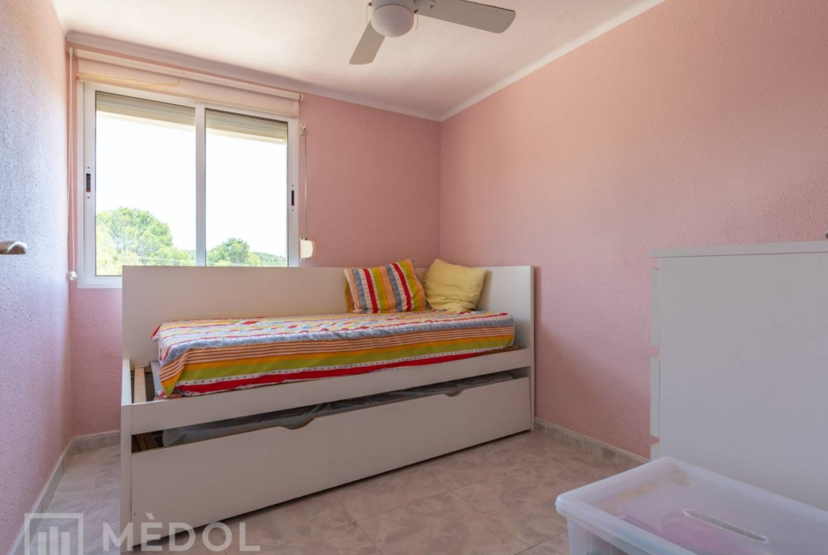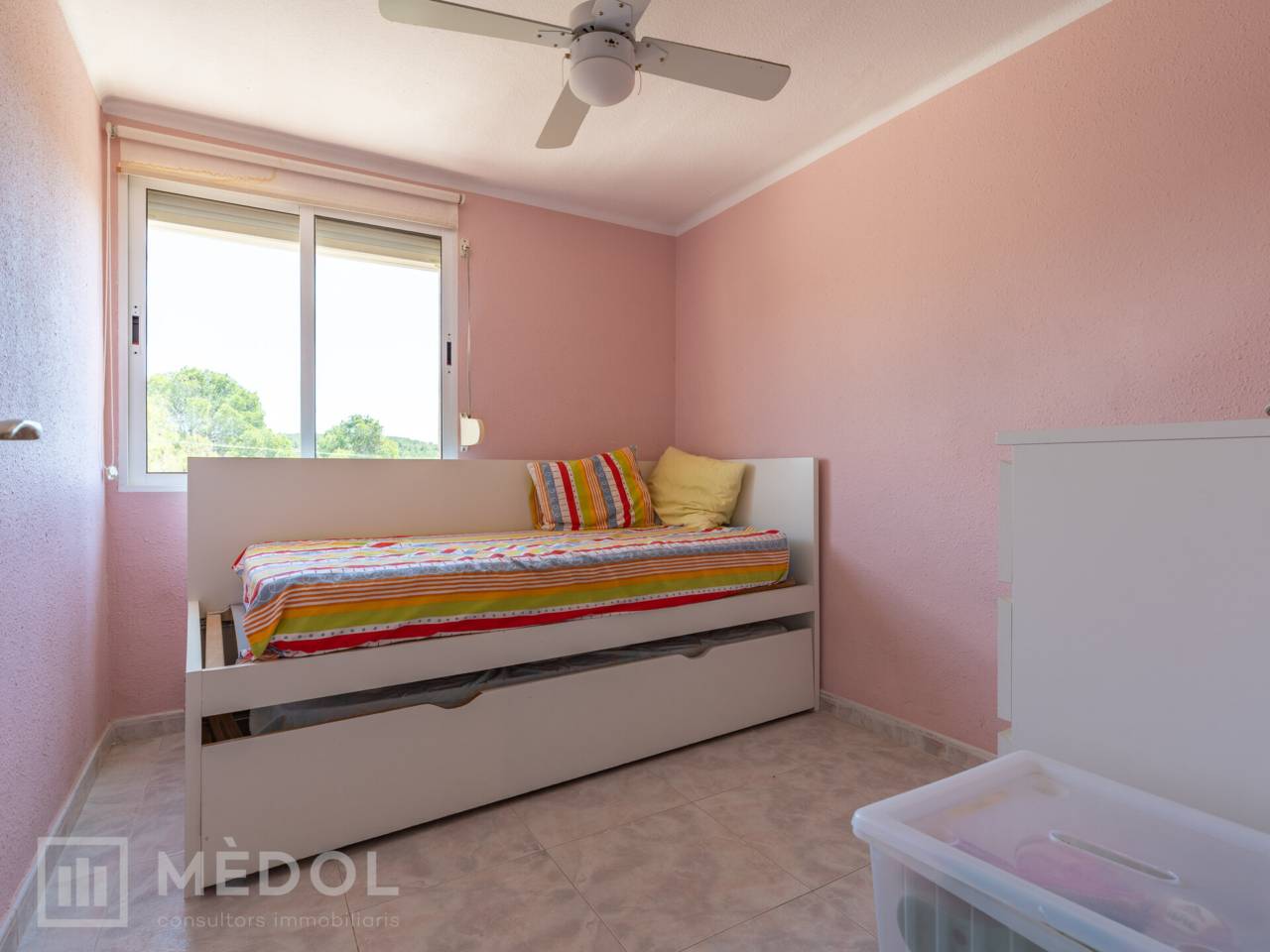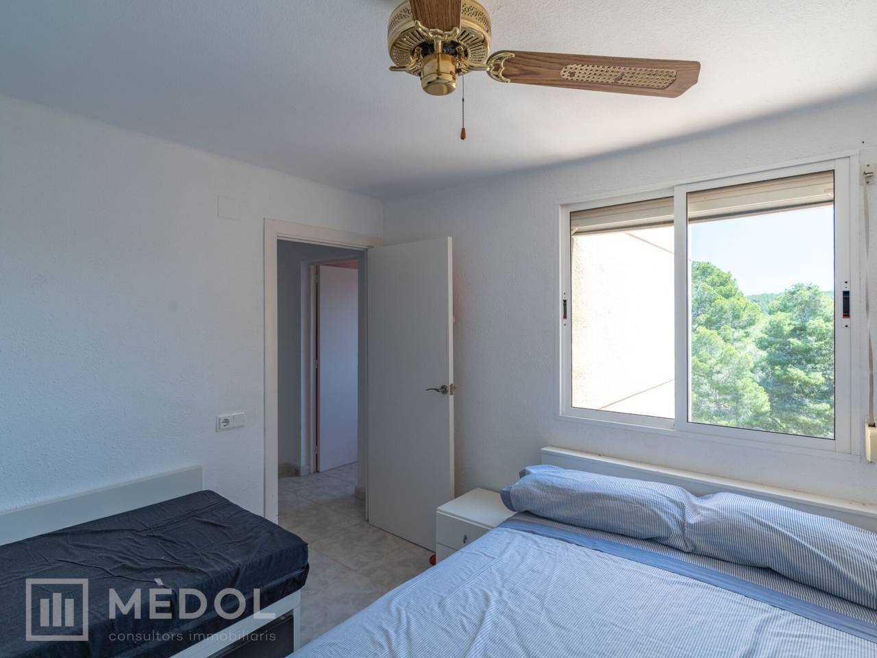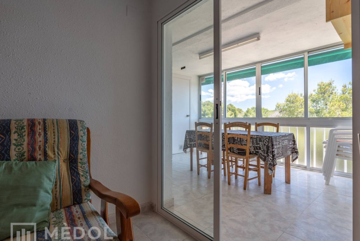 La vivienda cuenta con 75 m² muy bien distribuidos, con un amplio salón-comedor exterior que ofrece una bonita vista abierta a una zona verde, perfecta para relajarse. La cocina es abierta y muy funcional, ideal para el día a día.