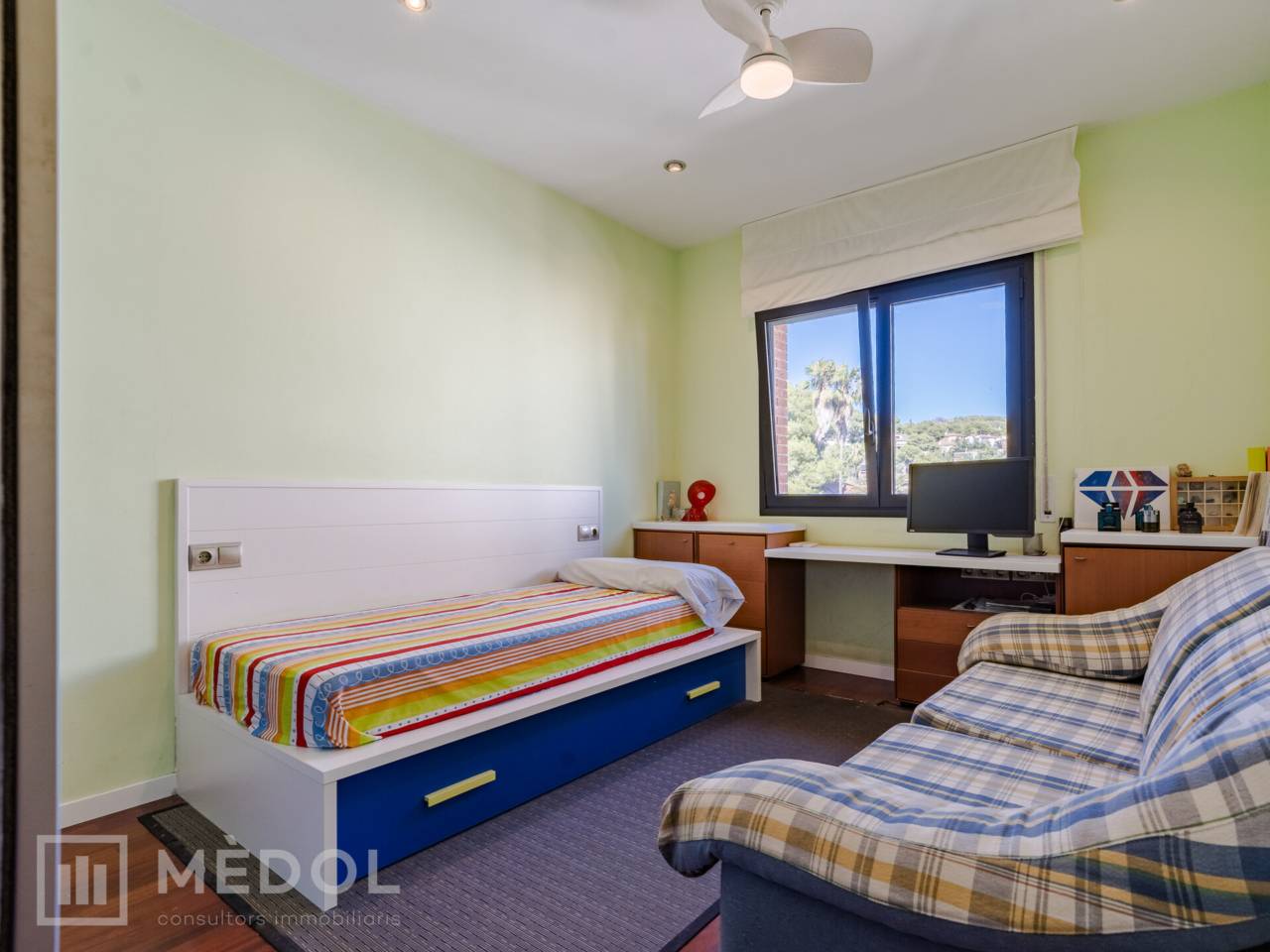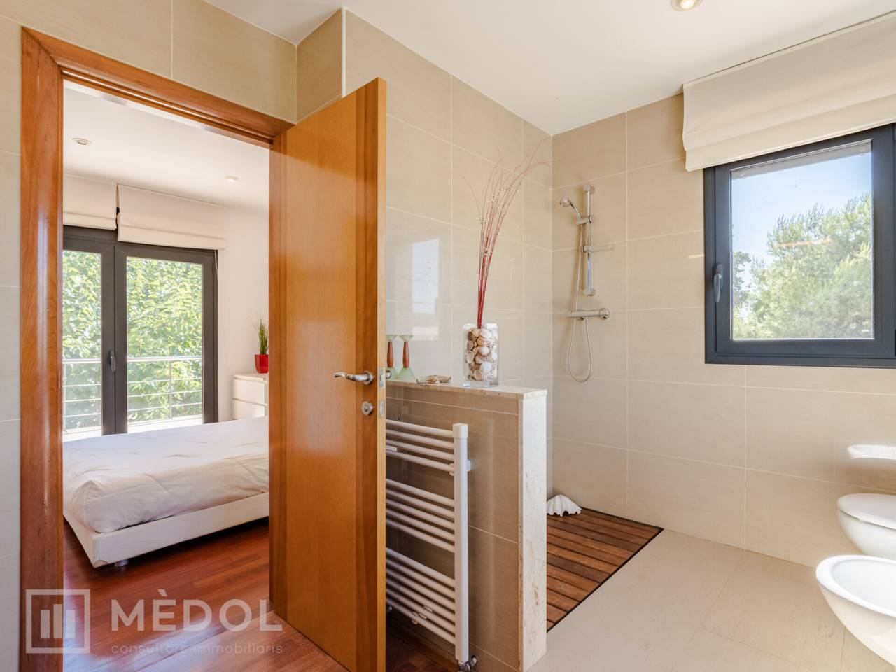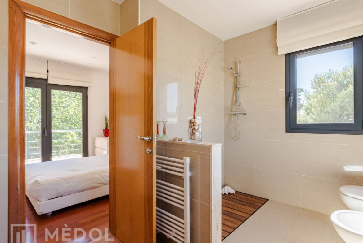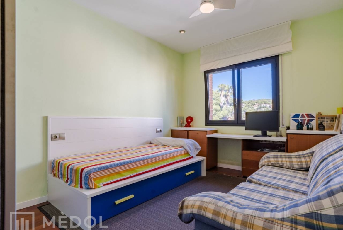 La primera planta alberga tres habitaciones, destacando una suite con baño completo y plato de ducha, así como un fantástico vestidor. Las otras dos habitaciones, con armarios empotrados, comparten un baño completo, ofreciendo comodidad y privacidad a todos los miembros de la familia.