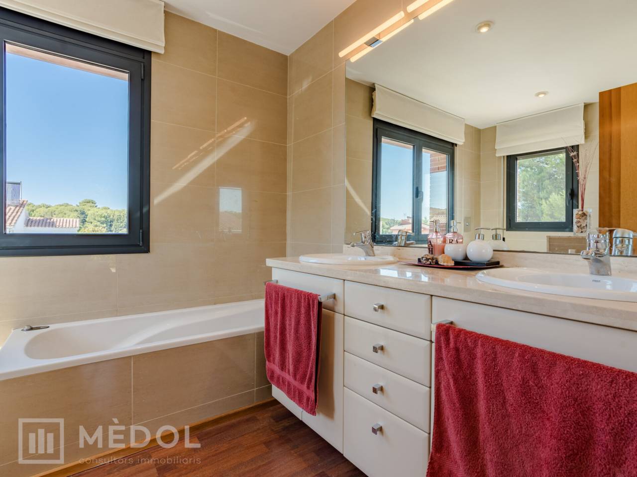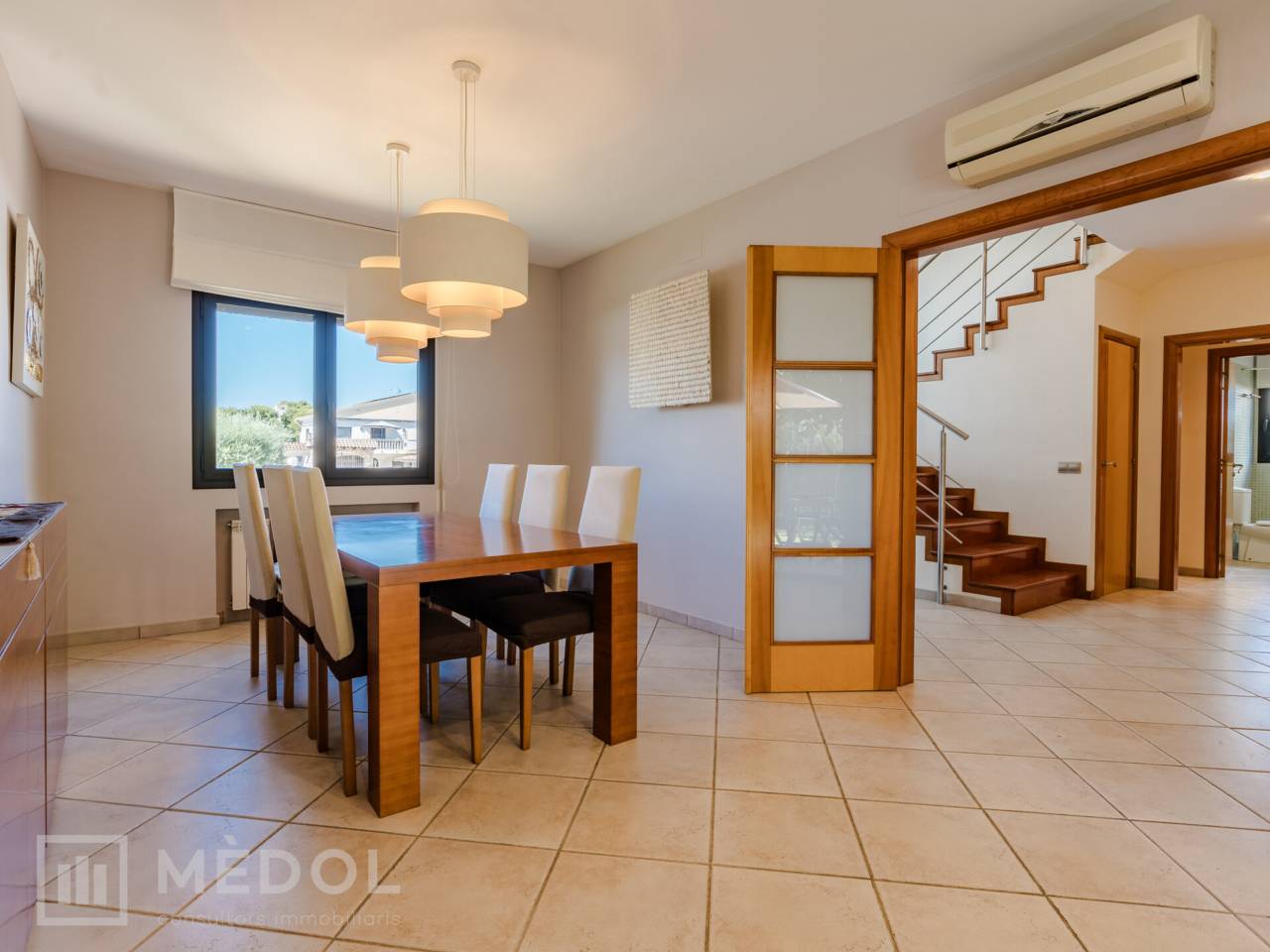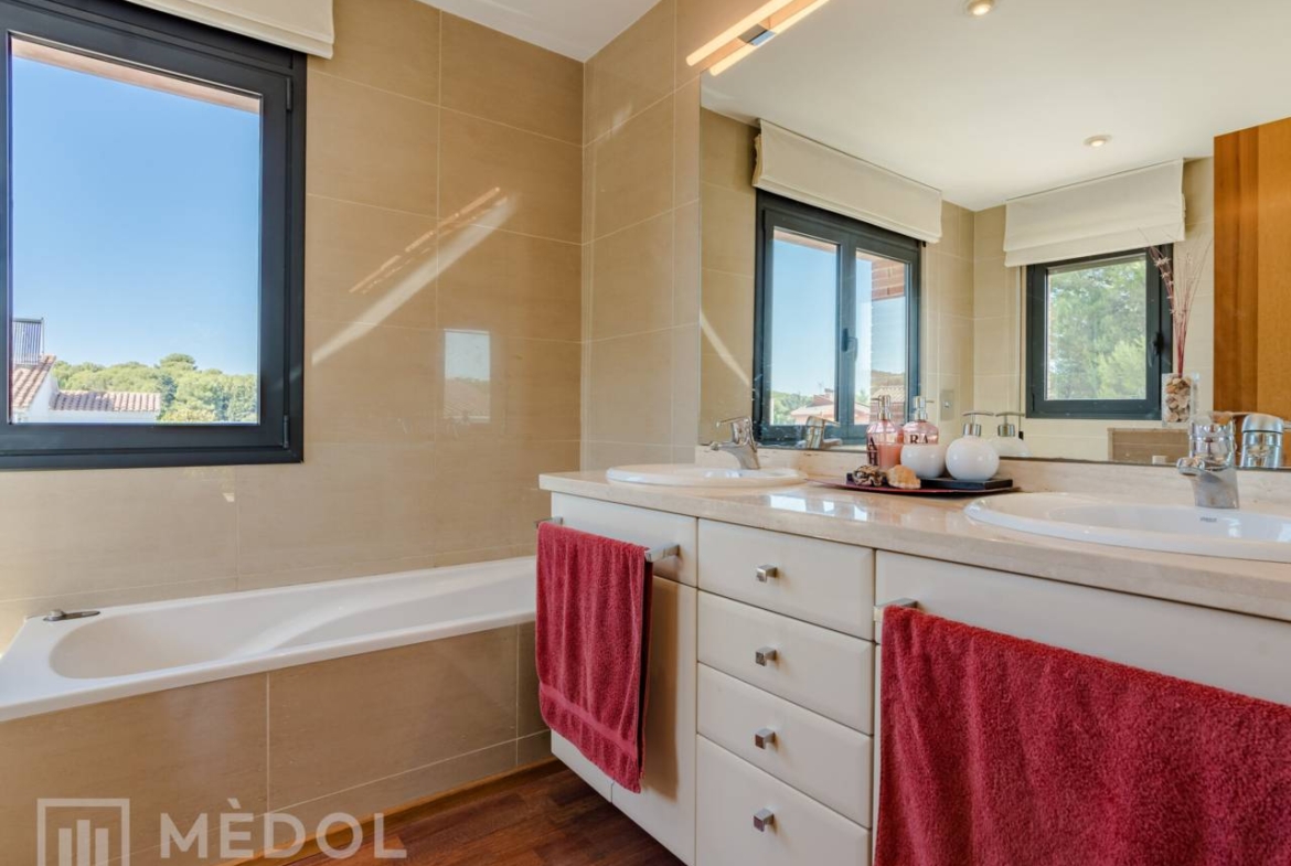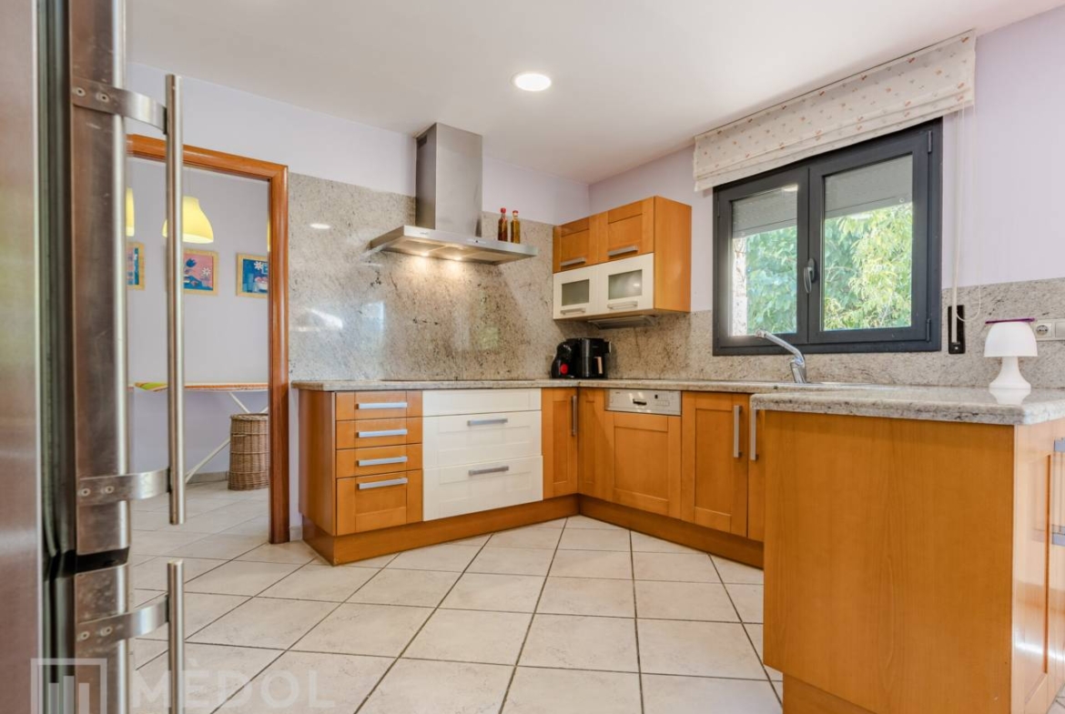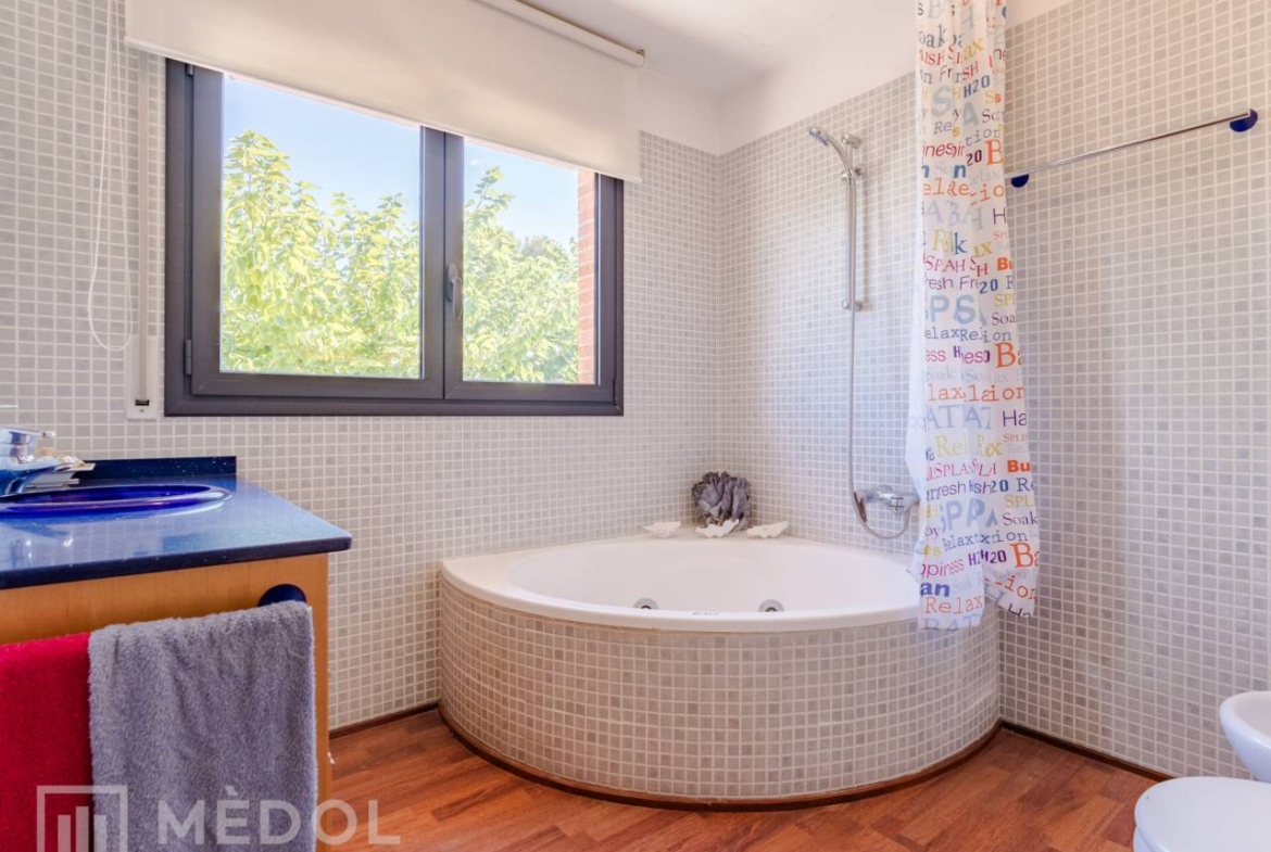El chalet cuenta con calefacción de gas y aire acondicionado en algunas estancias, asegurando el máximo confort durante todo el año. Los suelos combinan gres en la planta baja y cálido parquet en la planta alta, aportando elegancia y calidez a cada rincón de la casa.