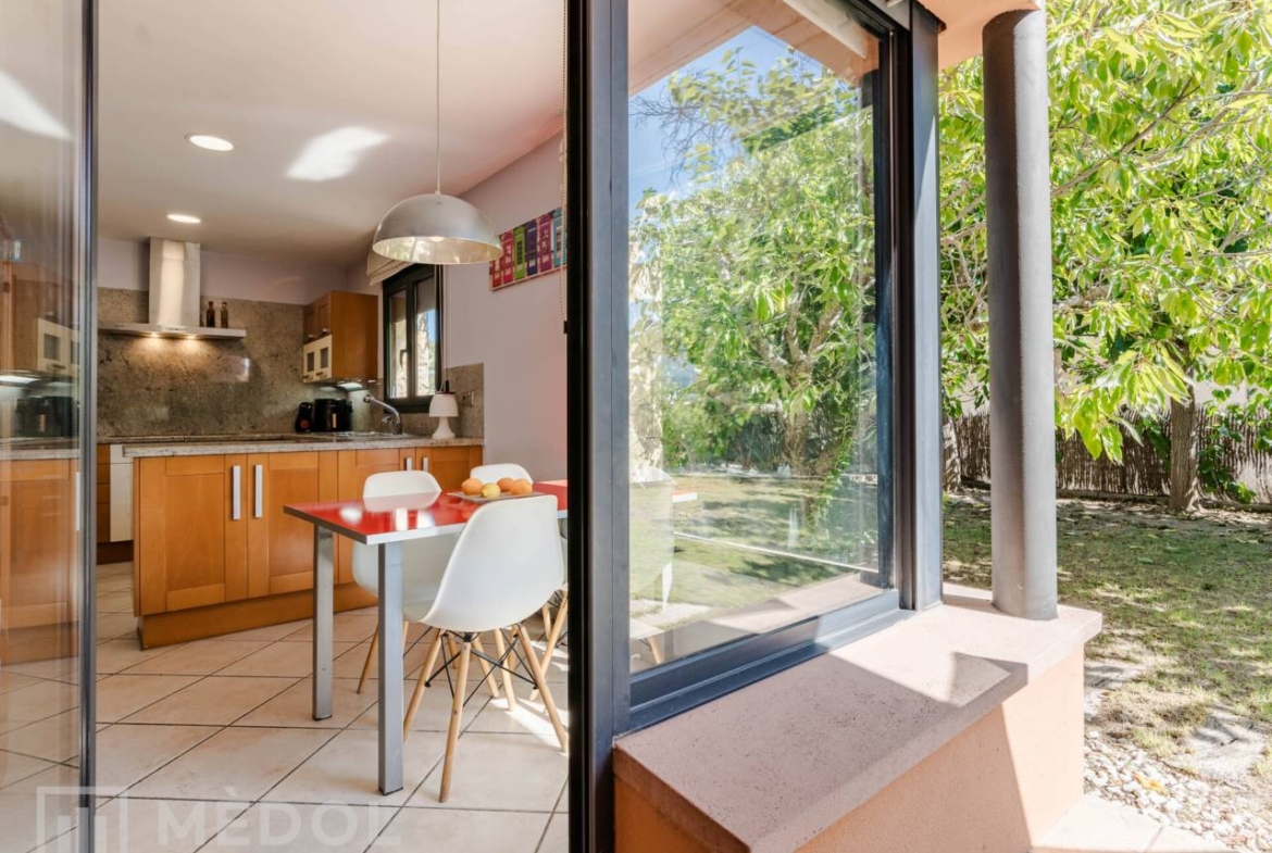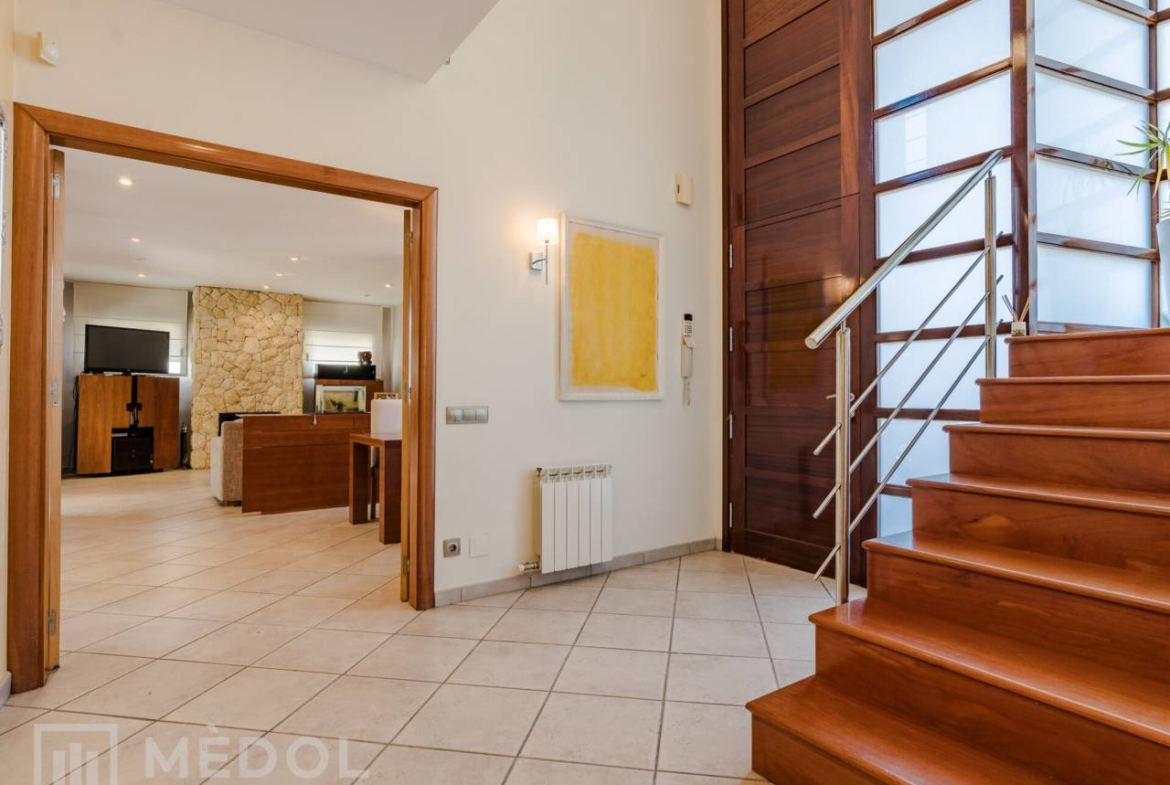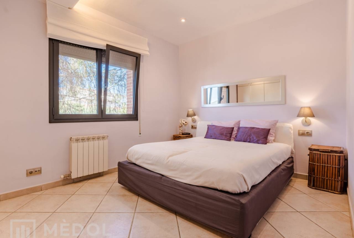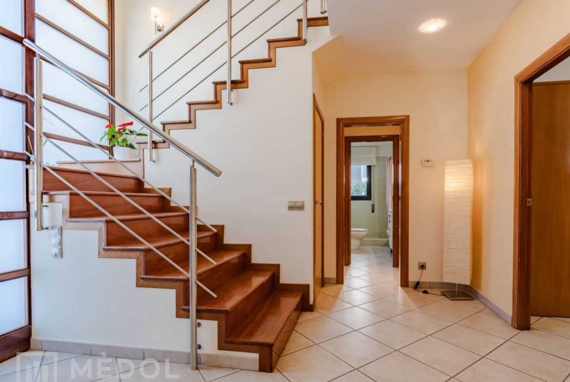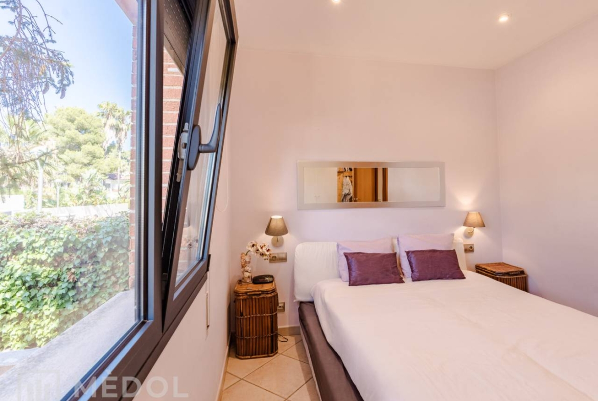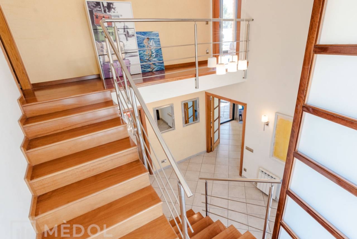 En la planta baja, serás recibido por una deslumbrante entrada de doble altura, inundada de luz natural. El magnífico salón comedor, totalmente abierto al jardín exterior gracias a dos ventanales impresionantes, es el espacio ideal para disfrutar en familia o con amigos. La cocina, completamente equipada y funcional, cuenta con espacio suficiente para comer y una práctica despensa. Además, en esta planta encontrarás una habitación doble muy práctica y un baño completo con ducha.