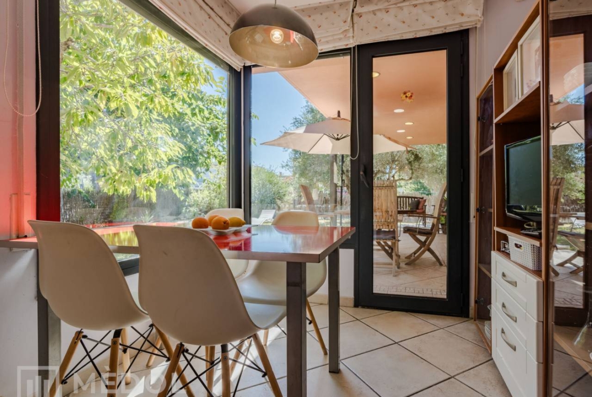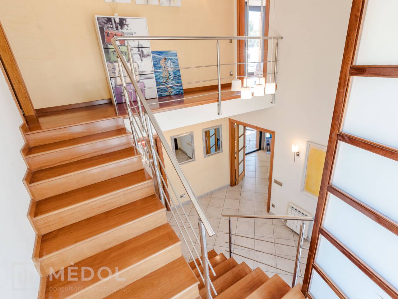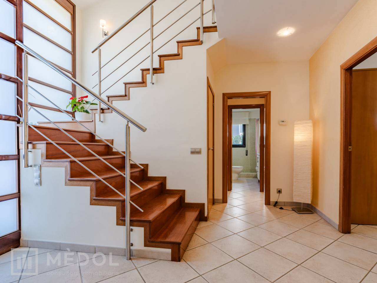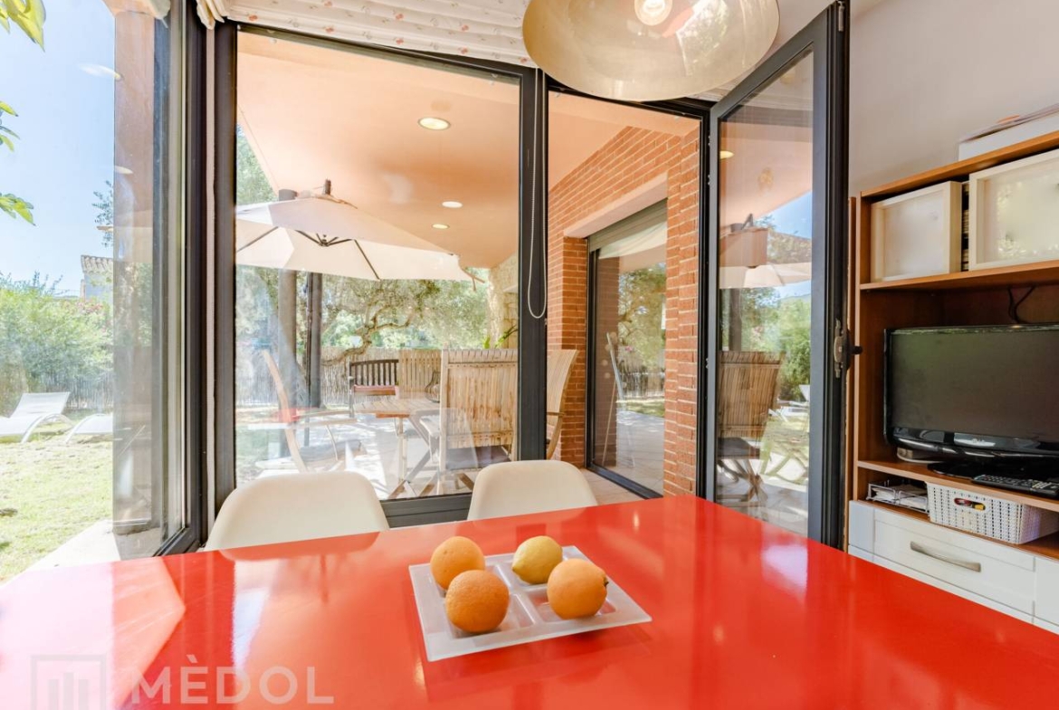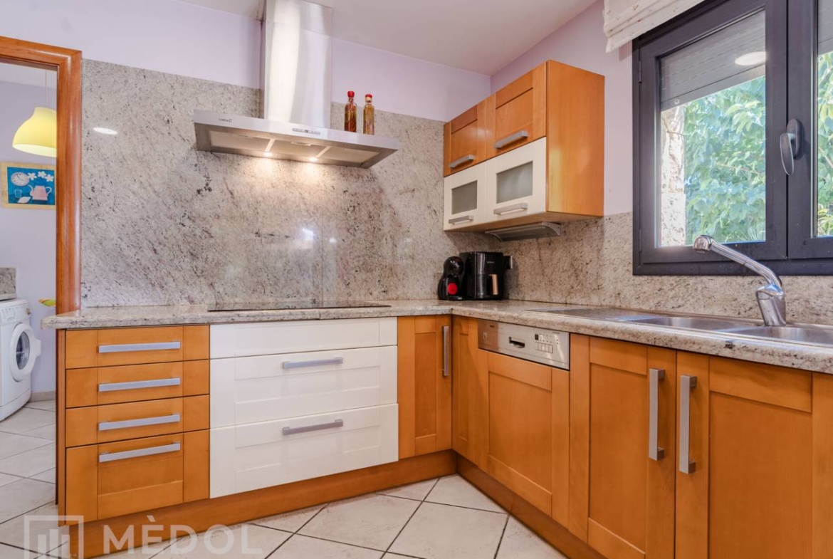 En la planta baja, serás recibido por una deslumbrante entrada de doble altura, inundada de luz natural. El magnífico salón comedor, totalmente abierto al jardín exterior gracias a dos ventanales impresionantes, es el espacio ideal para disfrutar en familia o con amigos. La cocina, completamente equipada y funcional, cuenta con espacio suficiente para comer y una práctica despensa. Además, en esta planta encontrarás una habitación doble muy práctica y un baño completo con ducha.