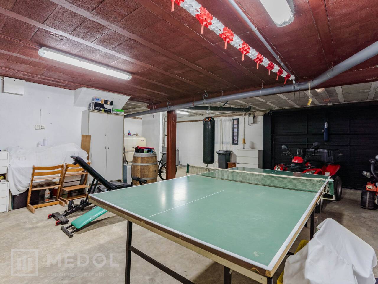 En la planta sótano, dispones de un excelente parking para varios coches y un espacio habilitado como salón o zona de fiestas, perfecto para tus eventos y celebraciones.