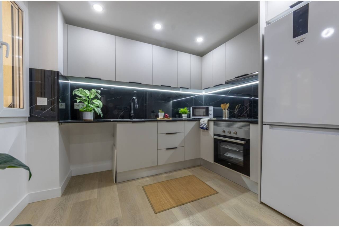 El salón-comedor se integra con una cocina abierta, moderna y totalmente equipada, creando un ambiente amplio y luminoso. Dispone de 2 baños completos con plato de ducha, perfectos para compartir sin perder comodidad.