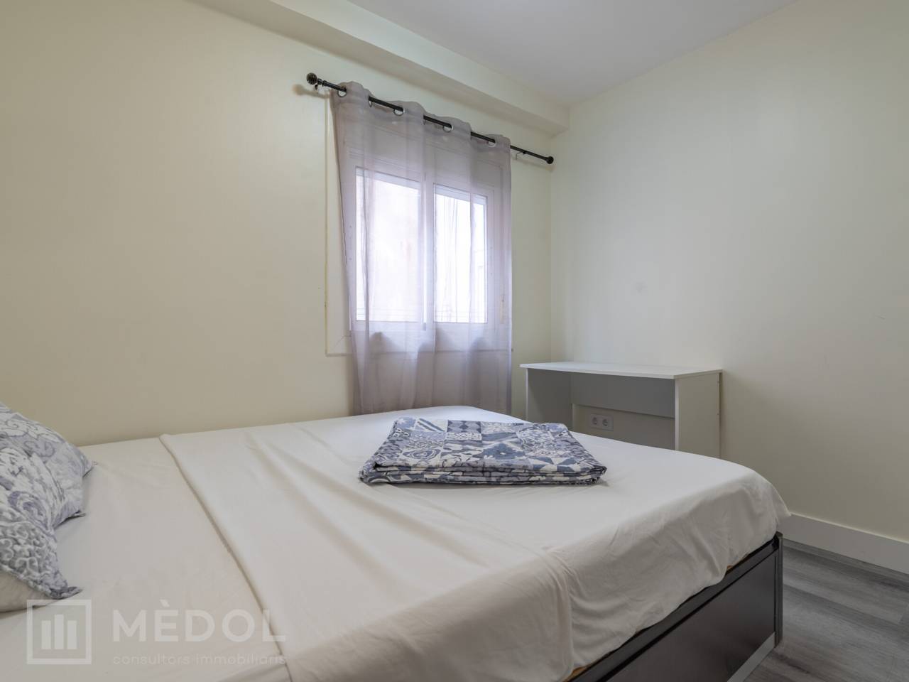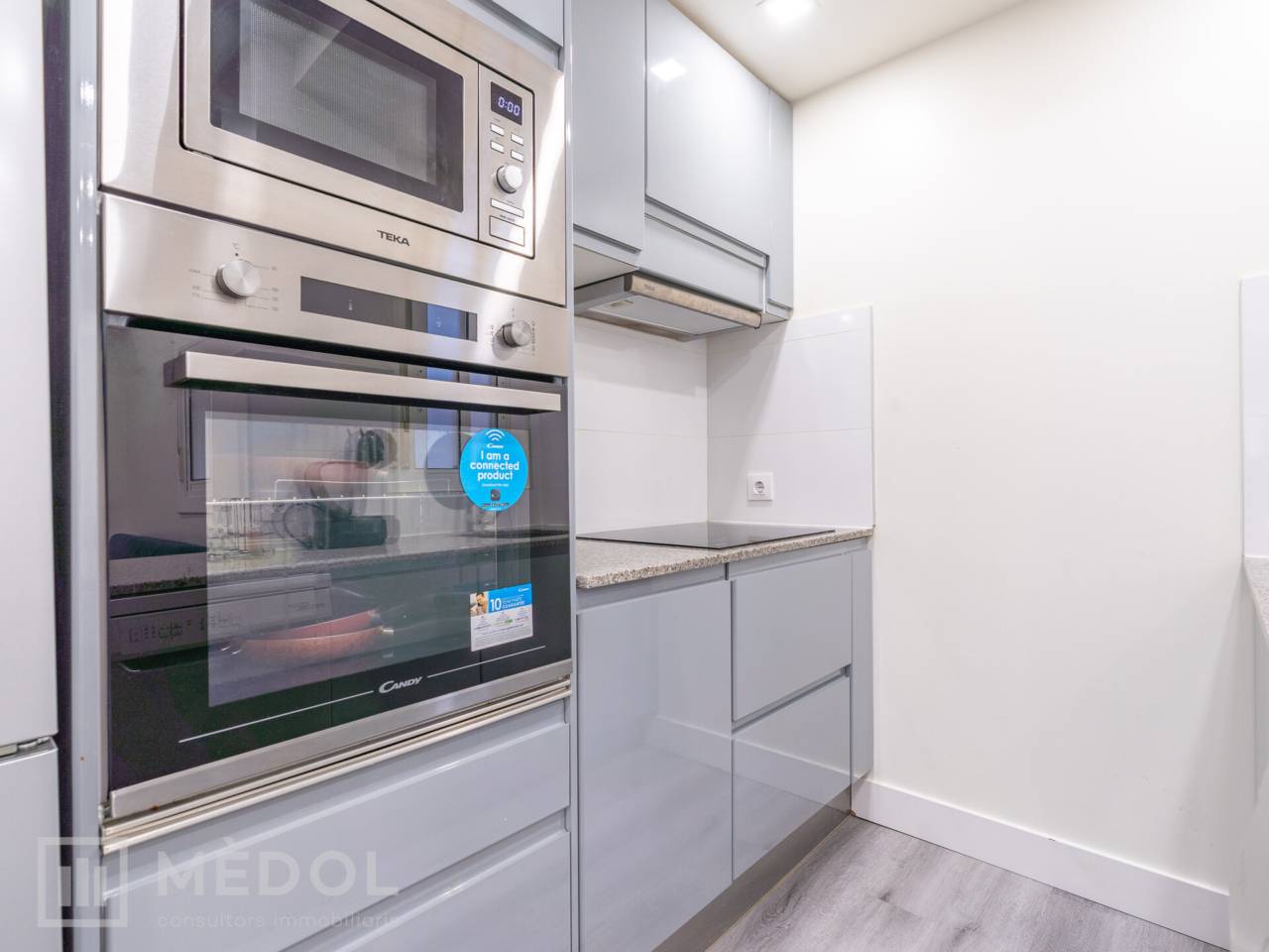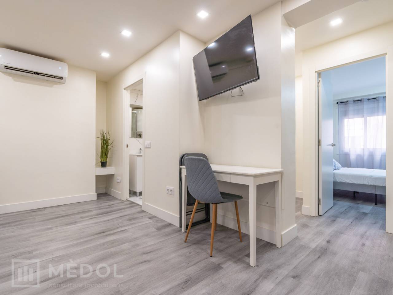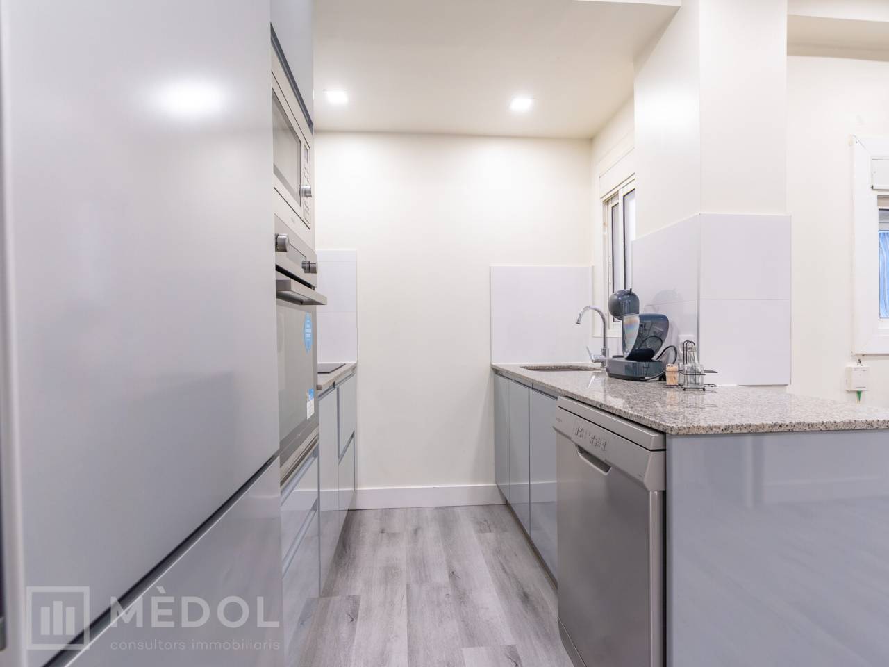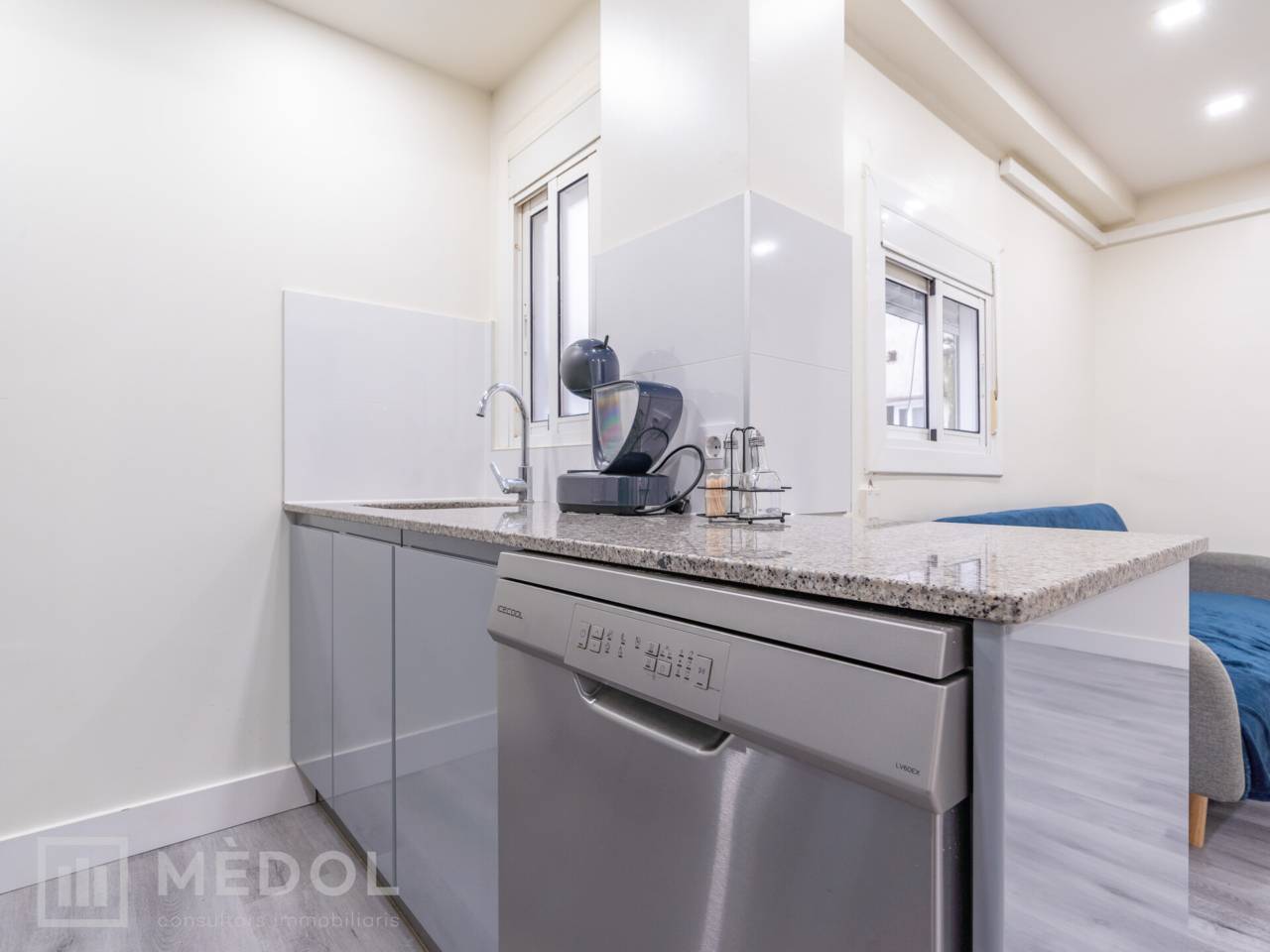 Dispone de un amplio salón comedor con cocina integrada, en concepto abierto, con una isla central que aporta estilo y practicidad. El piso esta distribuido en 2 habitaciones espaciosas con buena iluminación natural y un baño completo con ducha de diseño.